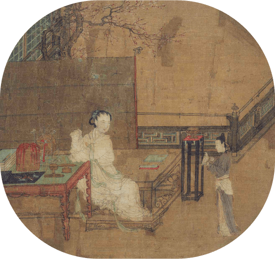 Song artists also placed refinement and inner cultivation in high regard. In the painting A Lady at Her Dressing Table in a Garden, a well-to-do woman sits at a vanity table full of makeup, yet her face is minimally decorated. She sits surrounded by plum blossoms, bonsai plants and bamboo, all of which “stand for her virtues and sophisticated taste,” as discussed by Bo Liu in ‘Physical Beauty and Inner Virtue: ‘Shinü tu’ in the Song Dynasty’.